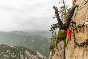 Nesse caminho, além das correntes para se agarrar, existe outro aparato de segurança, tipo cabo e mosquetão?