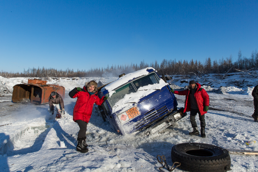 Quando nós dirigimos para o norte por essas estradas de inverno na Iacútia, Rússia, encontramos seis caminhões que caíram pelo gelo fino ter se quebrado e por isso ficaram encalhados. Esta é uma situação um tanto desesperadora, pois uma vez que o caminhão cai numa dessas armadilhas, duas horas é o suficiente para que ele congele onde caiu, impossibilitando ser rebocado. Não há o que fazer, esta é uma realidade que os caminhoneiros do frio tem que enfrentar todos os anos neste tipo de estrada.